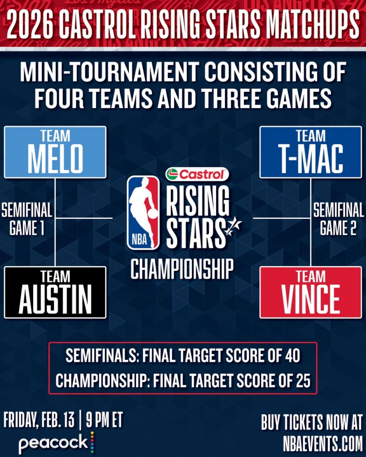 1月29日讯 今日NBA官方宣布了全明星新秀赛的对阵,具体如下: